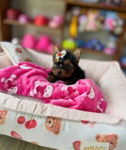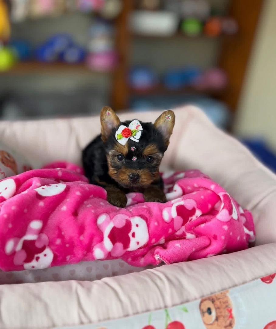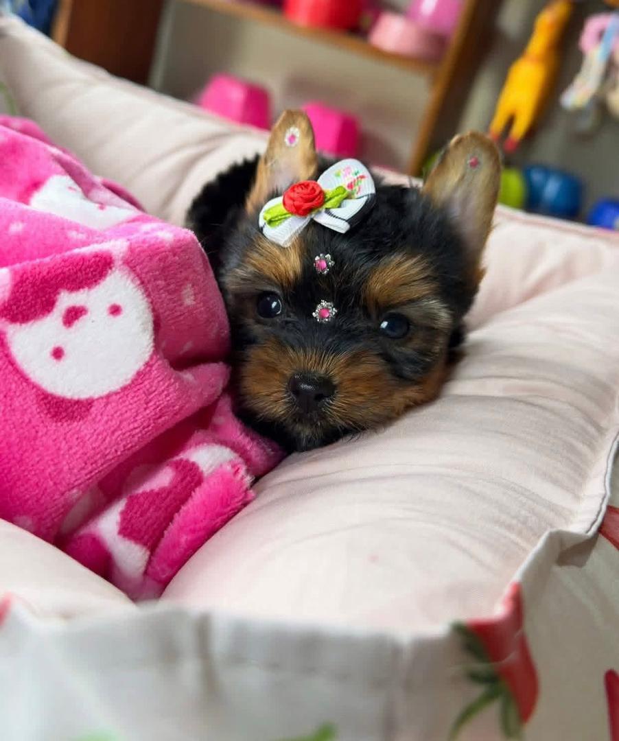 Chloe is a stunning 10-week-old teacup Yorkshire Terrier with a heart full of love and a personality that melts everyone she meets. Perfectly sized for cuddles, she’s the ultimate little lap companion who will happily spend her days by your side.